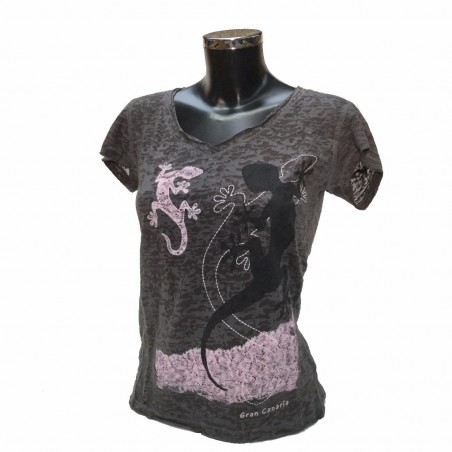 Grey girl T-shirt with two lizards and Gran Canaria. 60% cotton, 40 polyester.