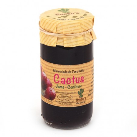 Cactus Indian Tuno Jam. Ingredients: Indian tuno, sugar, fruit pectin, lemon juice. Prepared with 70 grams of fruits per 100 grams. Total sugar content 35 grams per 100 grams. No preservatives or dye. Presentation: 100 grams.