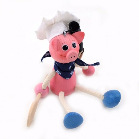 Wooden doll 18 cm. It has a hook to hang if desired. When hung it moves up and down through a dock.