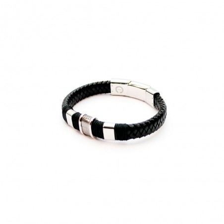 Enso Canarias bracelet. Model made of black leather and steel. Anti-allergic material. Size 22 and 23.5 cm adaptable.