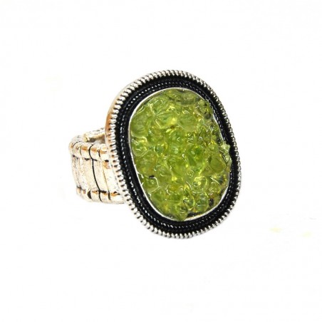 Enso Canarias elastic ring. Model made of zamak with olivina detail. Anti-allergic material.