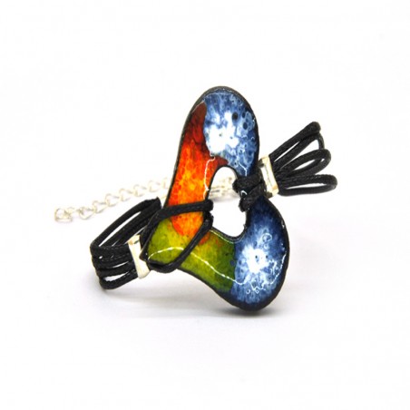 Heart Tricolor Bracelet . Handmade. Ceramic Piece: 3 cm.