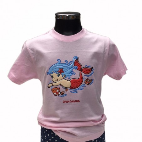 Children's T-Shirt 100% cotton. Color: Pink. Printed: little mermaid.