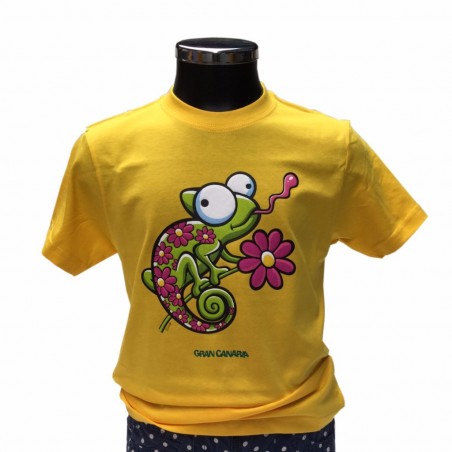Children's T-shirt 100% cotton. Color: Yellow. Printed: Flower Lizard.
