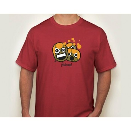 T-shirt color: red. Throw him Mojo. 100% cotton.