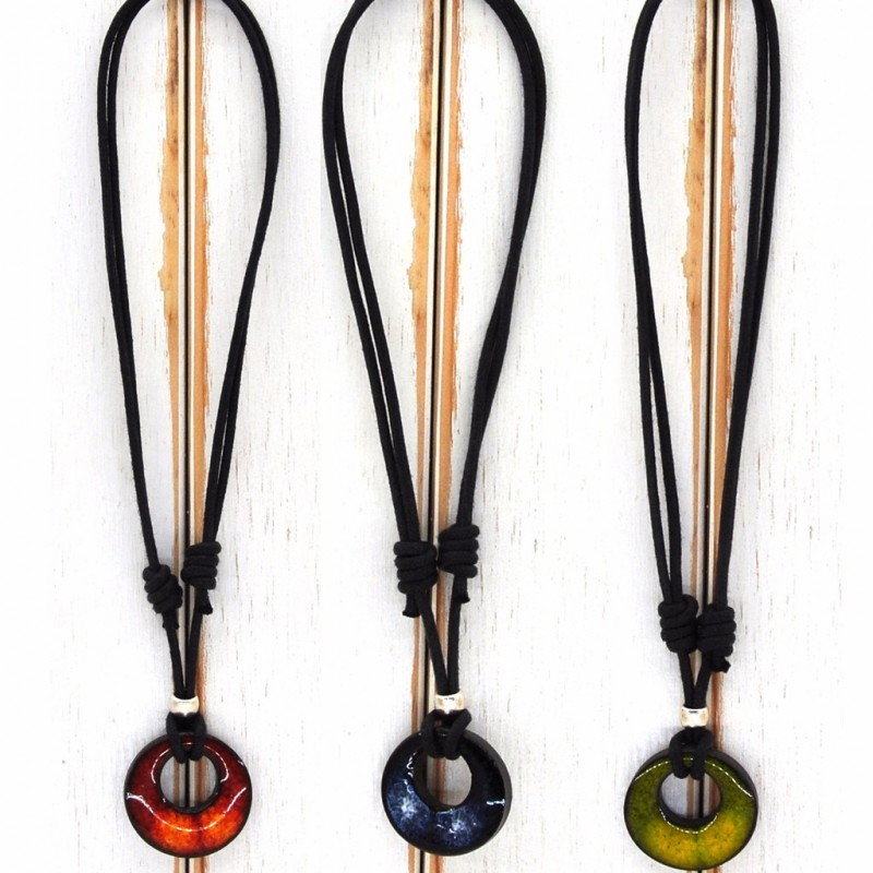 Round Necklace. Handmade. Ceramic Piece: 3 cm. Adjustable.
