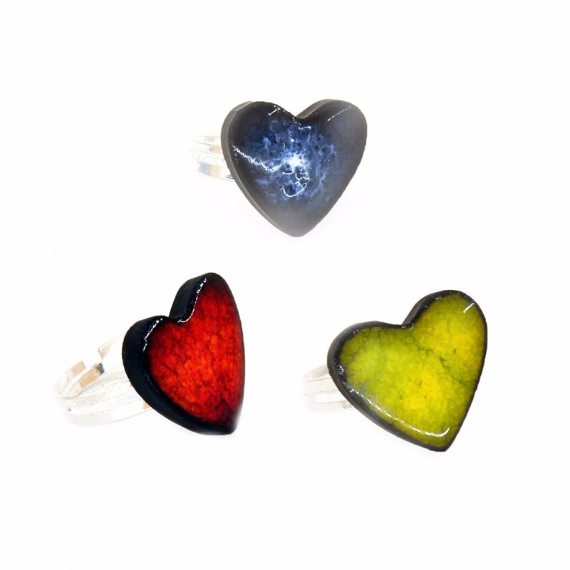 Anillo Corazón. Hecho a Mano. Pieza de Cerámica: 1.5 cm. Ajustable.