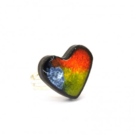 Anillo Corazón. Hecho a Mano. Pieza de Cerámica: 1.5 cm. Ajustable.