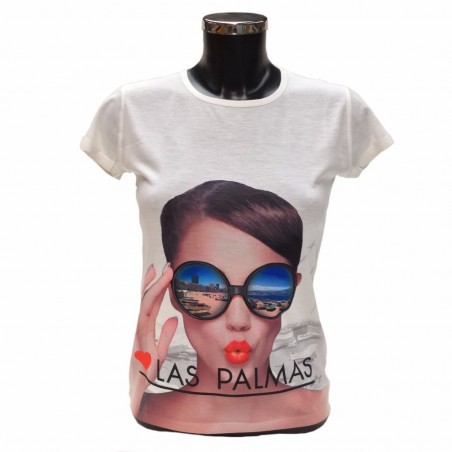 Camiseta blanco roto, Las Palmas con gafas de la playa de Las Canteras. 60% algodón y 40% poliéster.