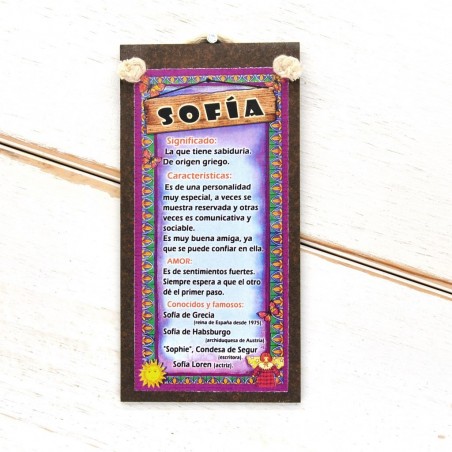 Cartel chico de madera. Significado del nombre. Dimensiones: 15 x 7.5 cm.