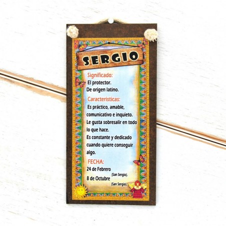 Cartel chico de madera. Significado del nombre. Dimensiones: 15 x 7.5 cm.
