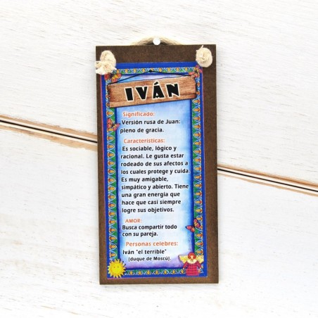 Cartel chico de madera. Significado del nombre. Dimensiones: 15 x 7.5 cm.