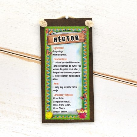 Cartel chico de madera. Significado del nombre. Dimensiones: 15 x 7.5 cm.