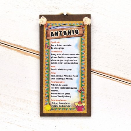 Cartel chico de madera. Significado del nombre. Dimensiones: 15 x 7.5 cm.