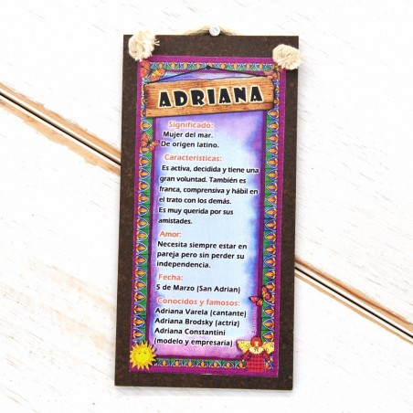Cartel chico de madera. Significado del nombre. Dimensiones: 15 x 7.5 cm.