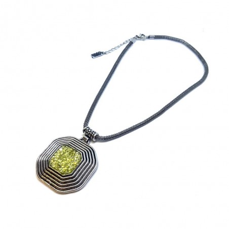 Collar cuadrado de olivina para mujer Enso Canarias. Material antialérgico. Fabricado en zamak y piedra de olivina. Talla 45cm
