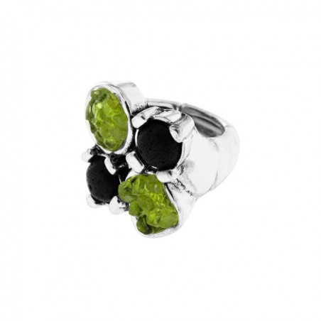 Anillo Enso Canarias. Modelo fabricado en lava, zamak con detalle de olivina. Material antialérgico.