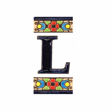 Letra Mini en cerámica L. Dimensiones: 3.7 cm x 7.5 cm.