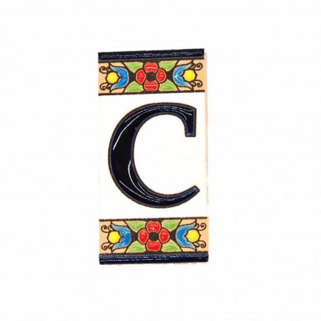 Letra Mini en cerámica C. Dimensiones: 3.7 cm x 7.5 cm.