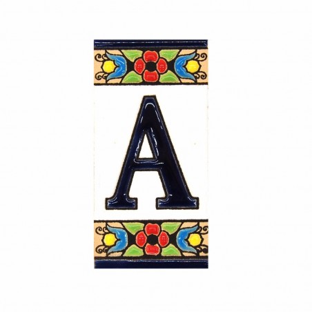 Letra Mini en cerámica A. Dimensiones: 3.7 cm x 7.5 cm.