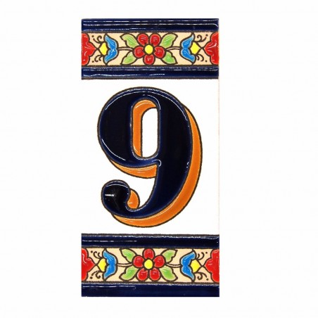 Número Flor en cerámica 9. Dimensiones: 11 cm x 5.5 cm.