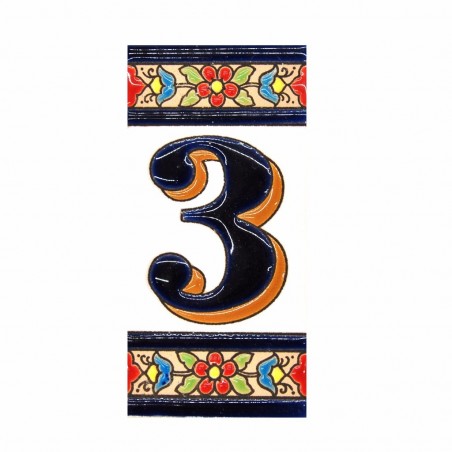 Número Flor en cerámica 3. Dimensiones: 11 cm x 5.5 cm.