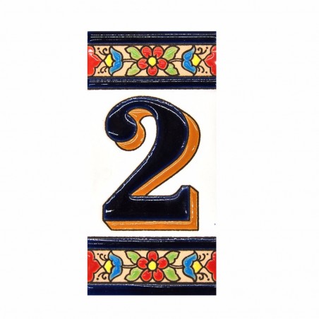 Número Flor en cerámica 2. Dimensiones: 11 cm x 5.5 cm.