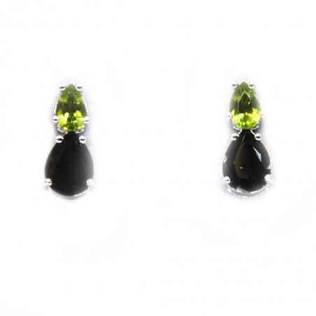 Pendiente en Plata con Olivina y Obsidiana. Lágrima.