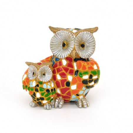Gaudí búho con bebe. Pintado totalmente a mano. Dimensiones: 6 cm.